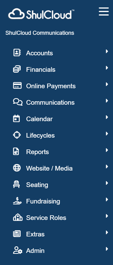Mid-2024 ShulCloud released a New Side Bar Navigation Menu as an upgrade to the Legacy Top Bar Admin Menu. This article will provide a crosswalk of where to find Legacy Top Bar Admin Menu items in the New Side Bar Navigation Menu.