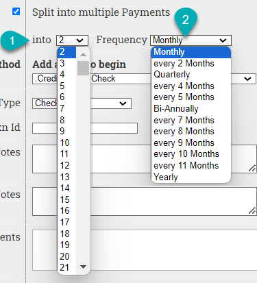 | 1. into | Select the number of payments the full amount should be split into. |