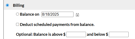 Generates a list of accounts with outstanding balances and enables statement generation. NOTE: Unsubscribing is not available for this list. |