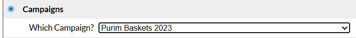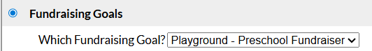 Supports mailings based on a specific fundraising campaign goal status. Select one fundraising goal from a dropdown. |