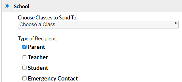 Available if using the School Module. Select the class list and who the recipient for the class should be. Select all that apply:
