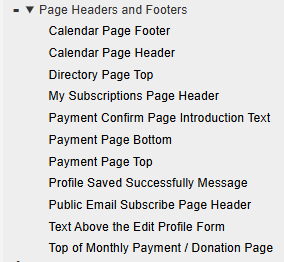 | Payment Page Top | Shown on top of Payment Page. Subject line will be the Heading of the page. |