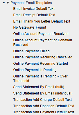 | Online Payment Recurring Started | When someone schedules a future payment, this email is sent. |