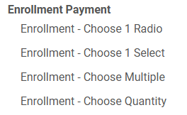 | Enrollment - Choose 1 Radio | Will show all of the Enrollment items, and a user would be able to select one. |