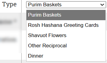 Choose the type of campaign from the available dropdown. Here we want Purim Baskets / Mishaloch Manot. |