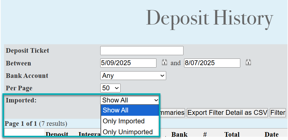 Improved load time on the Deposit History screen, especially for sites with large volumes of deposit records.