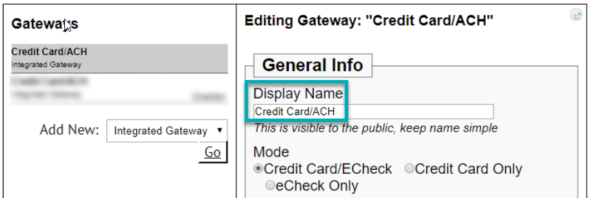 Modules Impacted: Gateway Set Up