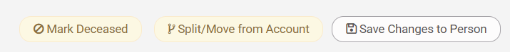 Additional settings are to mark the person as deceased, split or move the person from the account, and save changes. |