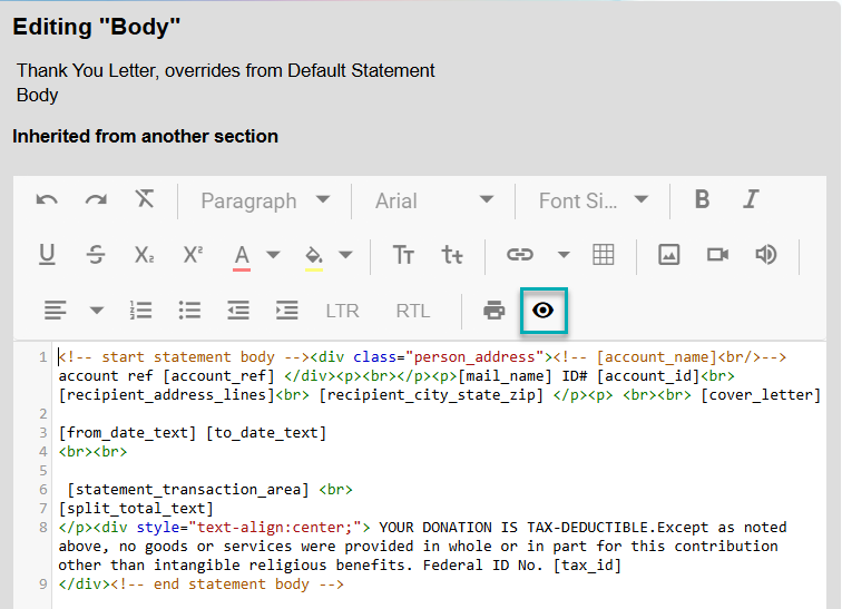 Fixed the Code View button in the rich-text editor for Email Invoice, Receipt, and Thank-You Letter templates so it now properly displays the HTML source code instead of reverting to plain text.