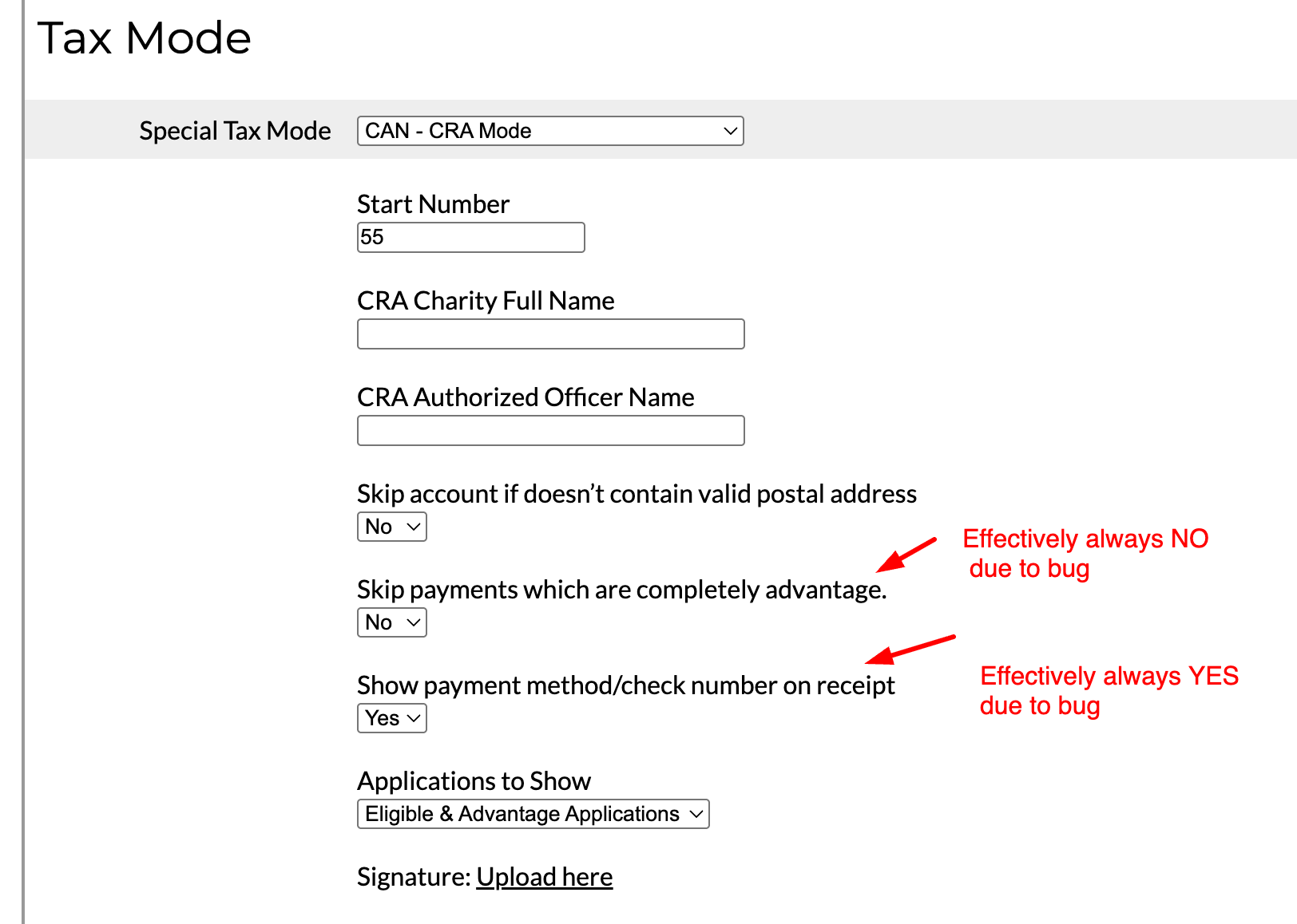– Currently ineffective; fully non-deductible (advantage) line items will appear on receipts regardless of the setting. - “Show payment method/check number on receipt”