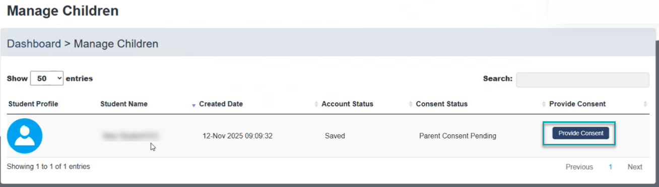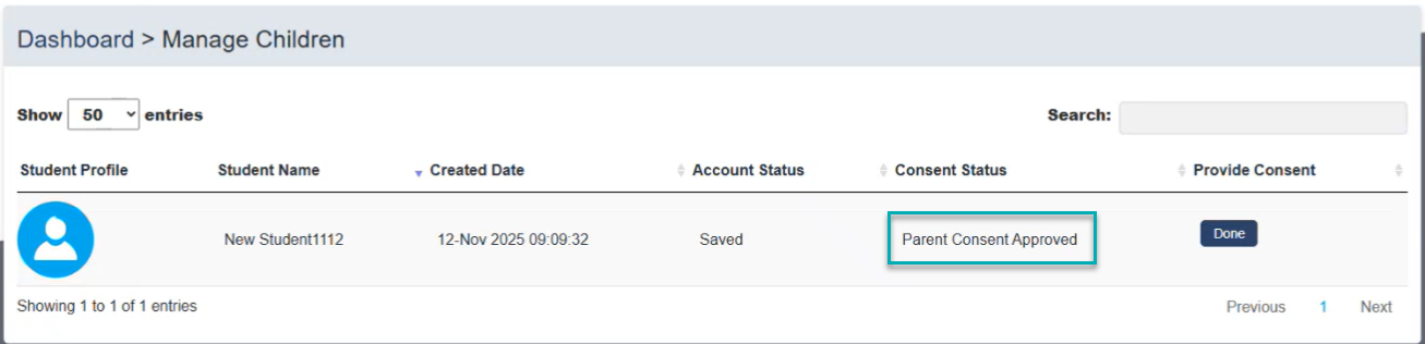 Once the parent has provided consent, they will receive an email with a link to create a password for their child's account as well as be provided with their system generated username.